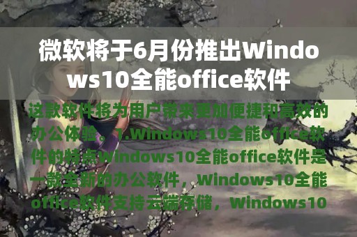 微软公司将在6月份推出全新的Windows10全能office软件,这款软件将为用户带来更加便捷和高效的办公体验。本文将介绍这款软件的特点和优势。