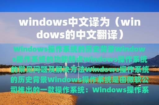 Windows是一款广受欢迎的操作系统,其中文译名为“窗口”,它的出现极大地推动了计算机的普及和发展。本文将为大家介绍Windows操作系统的相关知识,包括历史背景、功能特点、常见问题等。