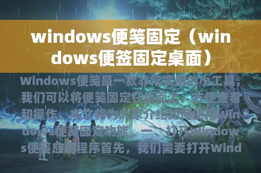 Windows便笺是一款非常实用的小工具,可以帮助我们记录日常生活中的重要事项和备忘录。在使用过程中,我们可以将便笺固定在桌面上,方便查看和操作。下面,本文将为大家介绍如何使用Windows便笺固定功能。