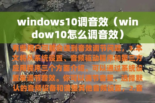 1. 在Windows10中,可以通过系统设置、音频驱动程序和第三方应用程序来调节音效。