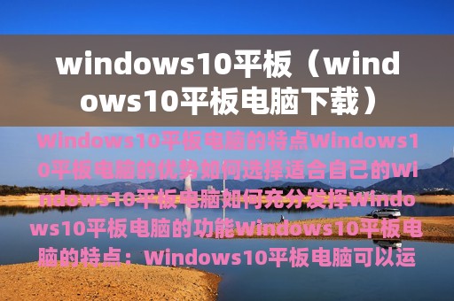 Windows 10平板电脑的特点: