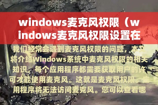 在使用Windows系统时,我们经常会遇到麦克风权限的问题,这给我们的工作和生活带来了很多不便。本文将介绍Windows系统中麦克风权限的相关知识,帮助大家更好地管理自己的麦克风。