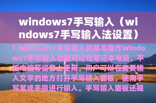 1. Windows7手写输入是一项方便实用的功能;