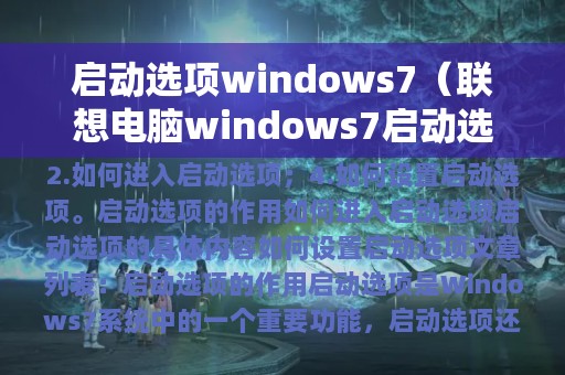 启动选项是Windows 7系统中的一个重要功能,它可以让用户在开机时选择不同的启动方式,以满足不同的需求。