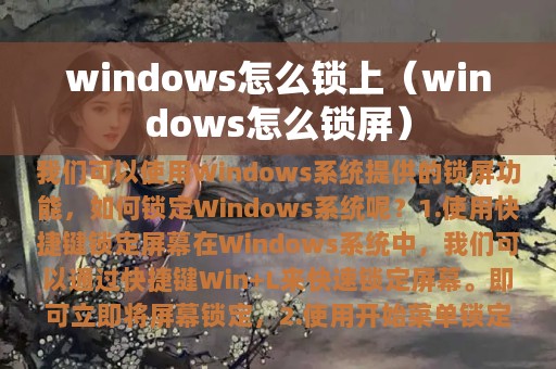 在日常生活和工作中,我们经常需要离开电脑一段时间,但又不希望他人随意访问我们的电脑。这时候,我们可以使用Windows系统提供的锁屏功能,保护我们的隐私和数据安全。那么,如何锁定Windows系统呢?本文将为您详细介绍。