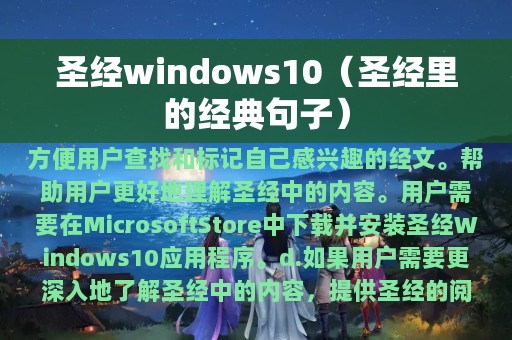 4. 圣经Windows 10为用户提供了便利和舒适的学习体验,让用户更好地了解圣经中的内容。