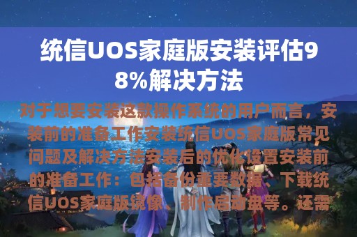统信UOS家庭版是一款基于Linux的操作系统,它具有高度的安全性和稳定性,同时也支持中文输入法等特色功能。对于想要安装这款操作系统的用户而言,可能会遇到一些问题,本文将为大家提供98%的解决方法。