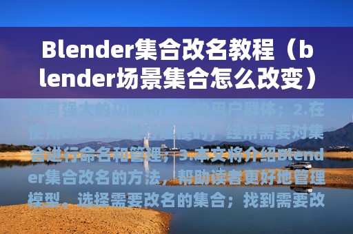 3. 本文将介绍Blender集合改名的方法,帮助读者更好地管理模型。