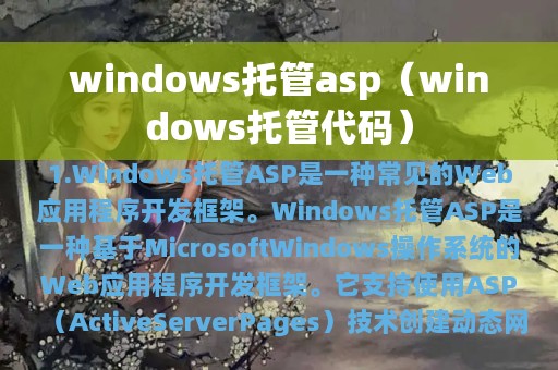 1. Windows托管ASP是一种常见的Web应用程序开发框架。