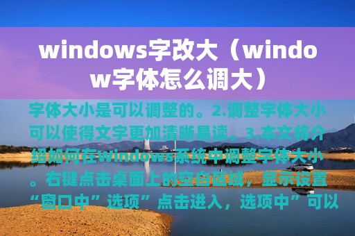 3. 本文将介绍如何在Windows系统中调整字体大小。