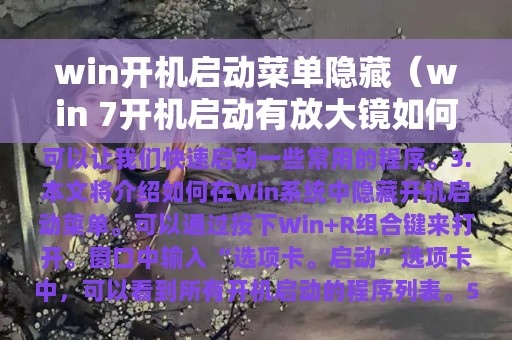 3. 本文将介绍如何在Win系统中隐藏开机启动菜单。