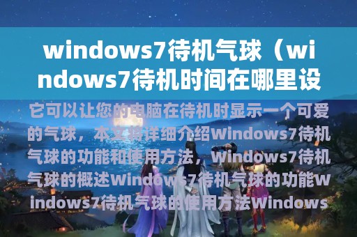 Windows7待机气球是指在电脑进入待机状态时,在屏幕上显示一个气球,以告诉用户电脑的状态。这个气球可以显示电脑的电量、待机时间等信息,非常实用。