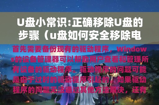 1. 驱动备份:在进行驱动恢复之前,首先需要备份现有的驱动程序,以便在恢复后出现问题时可以快速恢复。