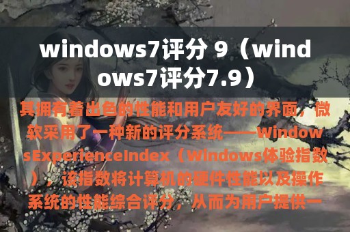 2. 本文将对Windows7的评分进行分析,探究其优秀之处。