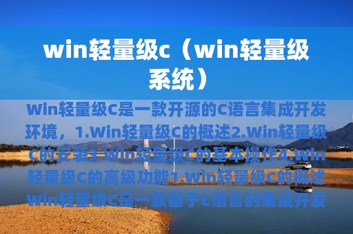 安装Win轻量级C非常简单,只需要下载安装包,然后按照提示进行安装即可。安装完成后,打开Win轻量级C,就可以开始使用了。