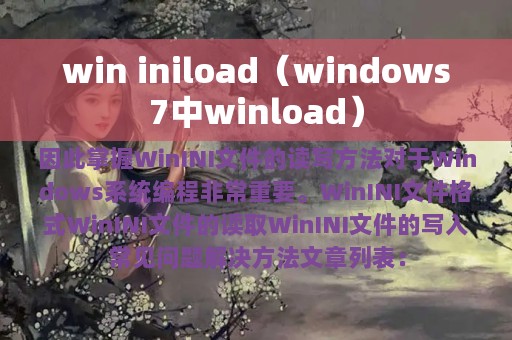 Win INI文件是Windows系统中非常常见的配置文件,掌握Win INI文件的读写操作对于Windows系统编程非常重要。本文介绍了Win INI文件的格式、读写方法以及常见问题解决方法,希望能够帮助读者更好地理解和使用Win INI文件。