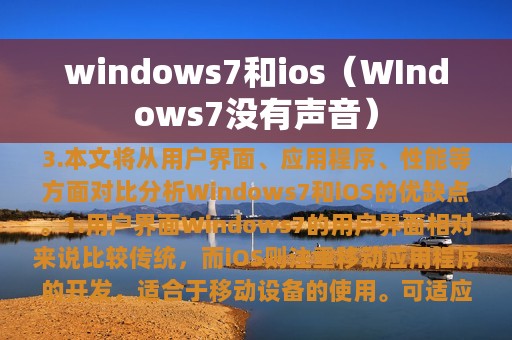 3. 本文将从用户界面、应用程序、性能等方面对比分析Windows 7和iOS的优缺点。