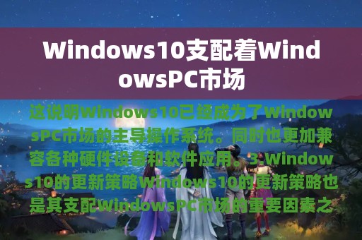 Windows 10自发布以来,一直占据着Windows PC市场的主导地位。本文将从多个角度分析Windows 10如何支配着Windows PC市场。
