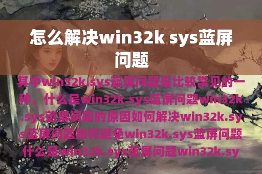 在使用Windows电脑时,有时候会遇到蓝屏问题,其中win32k.sys蓝屏问题是比较常见的一种。这个问题可能会导致电脑无法正常启动,给用户带来很大的困扰。本文将围绕如何解决win32k.sys蓝屏问题展开讨论,并提供详细的解决方案。
