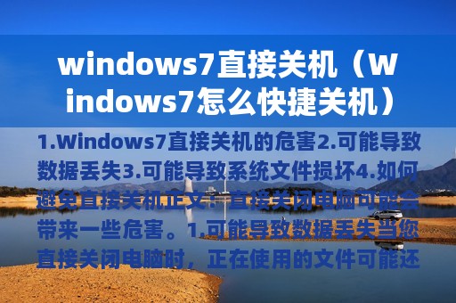 1. Windows7直接关机的危害