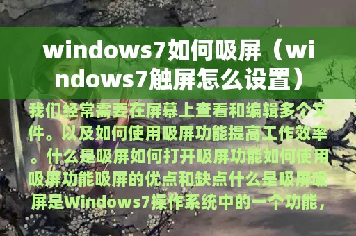 随着电脑的普及,我们经常需要在屏幕上查看和编辑多个文件。Windows 7提供了一项非常方便的功能,即吸屏。吸屏可以让我们将一个窗口固定在屏幕上,使其始终保持在最前面,不会被其他窗口覆盖。本文将介绍Windows 7如何吸屏,以及如何使用吸屏功能提高工作效率。