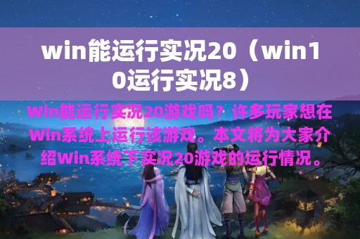 Win能运行实况20游戏吗?这是许多玩家都关心的问题。实况20是一款非常受欢迎的足球游戏,许多玩家想在Win系统上运行该游戏。本文将为大家介绍Win系统下实况20游戏的运行情况,以及如何在Win系统上运行该游戏。
