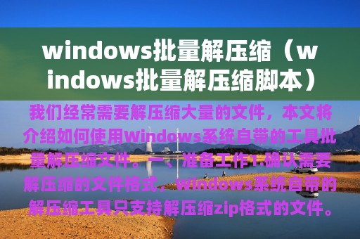 1. 在日常工作中,我们经常需要解压缩大量的文件,如果一个个手动解压缩,不仅费时费力,而且容易出错。