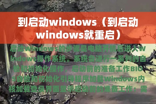 启动Windows的步骤是电脑开机后进入Windows操作系统。在这个过程中,系统会进行一系列的自检和初始化操作,然后进入登录界面,等待用户输入账号和密码进行登录。接下来,我们将详细介绍启动Windows的具体步骤。