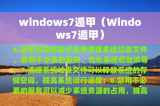 6. 遁甲的具体操作包括清理系统垃圾文件、禁用不必要的服务、优化系统启动项等;