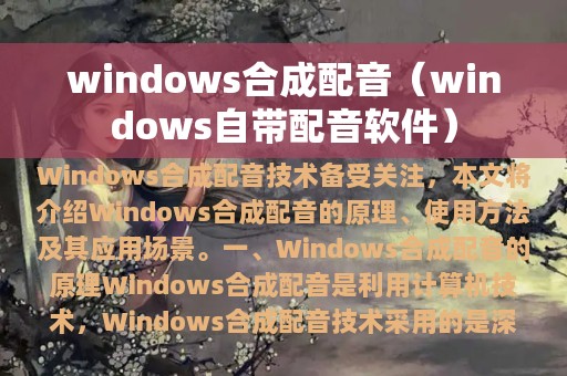 Windows合成配音是利用计算机技术,将文字转化成语音的过程。其原理是通过文本分析、音素转换、声学模型等多个步骤,将文字转化为自然流畅的语音。Windows合成配音技术采用的是深度神经网络技术,通过对大量语音数据的训练,使得合成出的语音更加自然、流畅。