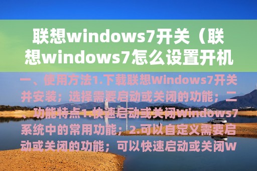 联想Windows 7开关是一款非常实用的工具,它可以帮助用户快速地启动或关闭Windows 7系统中的一些常用功能。下面,我们将为大家介绍联想Windows 7开关的使用方法以及其功能特点。