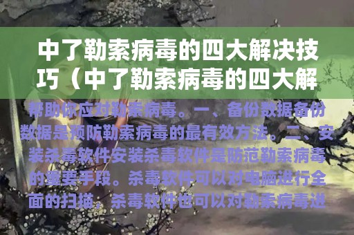 以上是防范勒索病毒的四大解决技巧,希望能帮助大家有效应对勒索病毒。记住备份数据、安装杀毒软件、更新系统和软件、加强安全意识,让我们的电脑更加安全可靠!