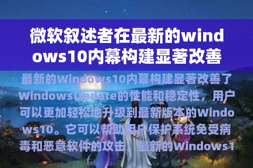 Windows Update是Windows操作系统的更新程序,它可以帮助用户升级到最新版本的Windows 10,并为系统提供安全补丁和更新。最新的Windows 10内幕构建显著改善了Windows Update的性能和稳定性,用户可以更加轻松地升级到最新版本的Windows 10。