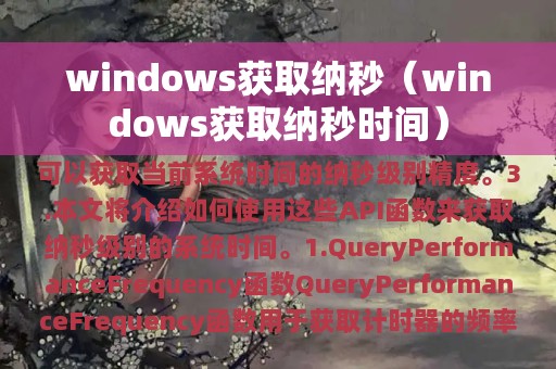2. Windows系统提供了一些API函数,可以获取当前系统时间的纳秒级别精度。
