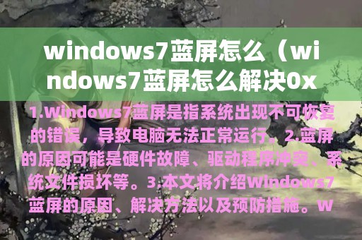 1. Windows7蓝屏是指系统出现不可恢复的错误,需要采取相应措施解决。