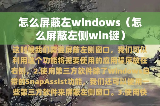 如果您只是需要临时屏蔽左侧窗口,可以使用Windows自带的快捷键。按下Windows键和左箭头键,就可以将当前窗口移动到屏幕左侧,然后再按下Windows键和向下箭头键,就可以将窗口最小化,从而达到屏蔽左侧窗口的效果。