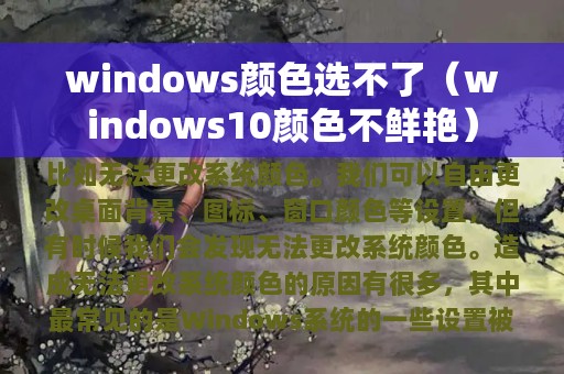 造成无法更改系统颜色的原因有很多,其中最常见的是 Windows 系统的一些设置被损坏或者出现了错误,或者是一些第三方软件的干扰。还有一种可能是您的电脑硬件出现了问题,导致无法正常更改颜色。