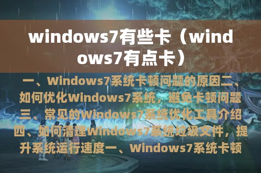 一、Windows 7系统卡顿问题的原因