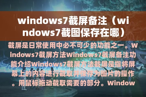 Windows 7是目前广泛使用的操作系统之一,截屏是日常使用中必不可少的功能之一。本文将为大家详细介绍Windows 7截屏的方法和备注功能,让您轻松掌握。