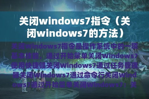关闭Windows 7指令是操作系统中的一项基本技能,掌握后可以更加方便地管理电脑。下面将为大家详细介绍如何关闭Windows 7系统。
