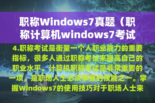 8. 总之,了解职称Windows7真题对于职场人士来说是非常重要的。通过做真题,可以提高自己的职业能力,更好地应对工作中的挑战。