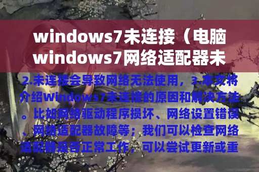 3. 本文将介绍Windows7未连接的原因和解决方法。