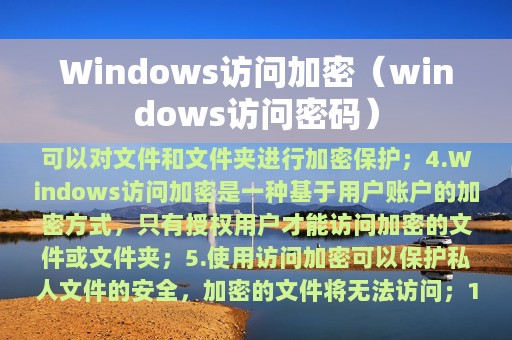 3. 本文将介绍Windows访问加密的基本原理、使用方法以及注意事项。