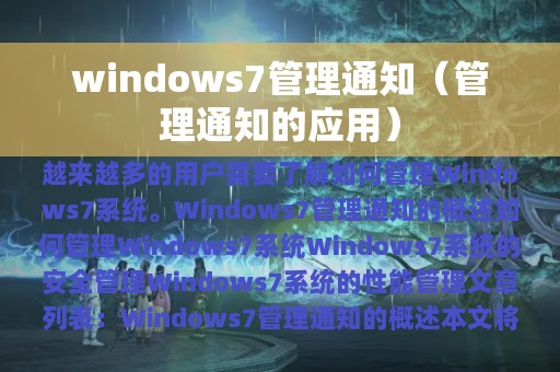 随着Windows 7的普及,越来越多的用户需要了解如何管理Windows 7系统。本文将为大家介绍Windows 7管理通知的相关内容,包括大纲目录和文章列表。