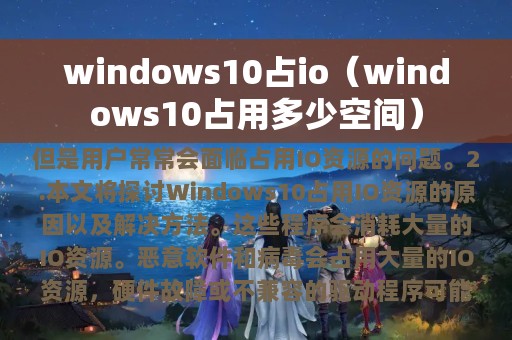 2. 本文将探讨Windows 10占用IO资源的原因以及解决方法。