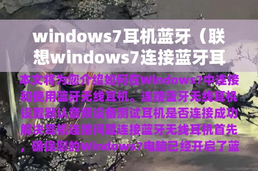 随着科技的不断发展,蓝牙无线耳机已经成为了人们生活中不可或缺的一部分。而在 Windows 7 操作系统中,使用蓝牙无线耳机也非常方便。本文将为您介绍如何在 Windows 7 中连接和使用蓝牙无线耳机。