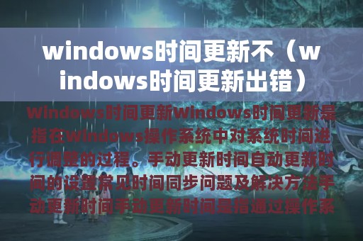 Windows 时间更新是指在 Windows 操作系统中对系统时间进行调整的过程。本文将介绍 Windows 时间更新的相关知识,包括如何手动更新时间、自动更新时间的设置、常见时间同步问题及解决方法等。