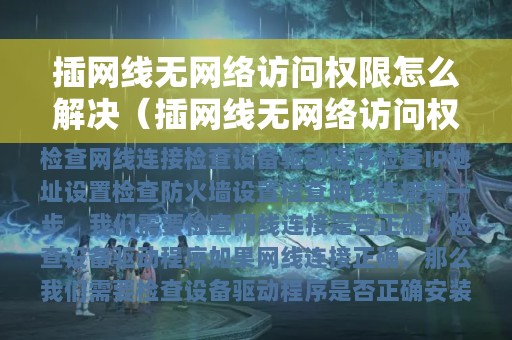 随着互联网的普及,我们已经离不开网络了。但是,有时候我们插上网线却无法访问网络,这是一件非常烦恼的事情。本文将为大家介绍插网线无网络访问权限的解决方法。