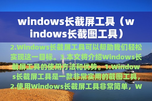 3. 本文将介绍Windows长截屏工具的使用方法和优势。