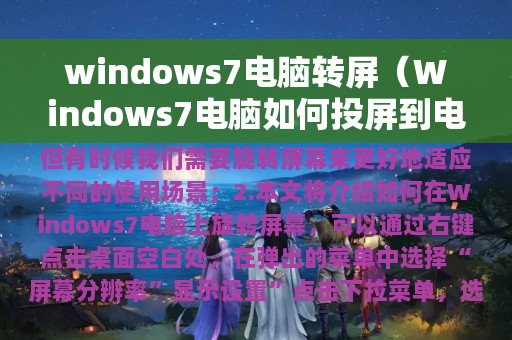 2. 本文将介绍如何在Windows7电脑上旋转屏幕,以及可能遇到的问题和解决方法。